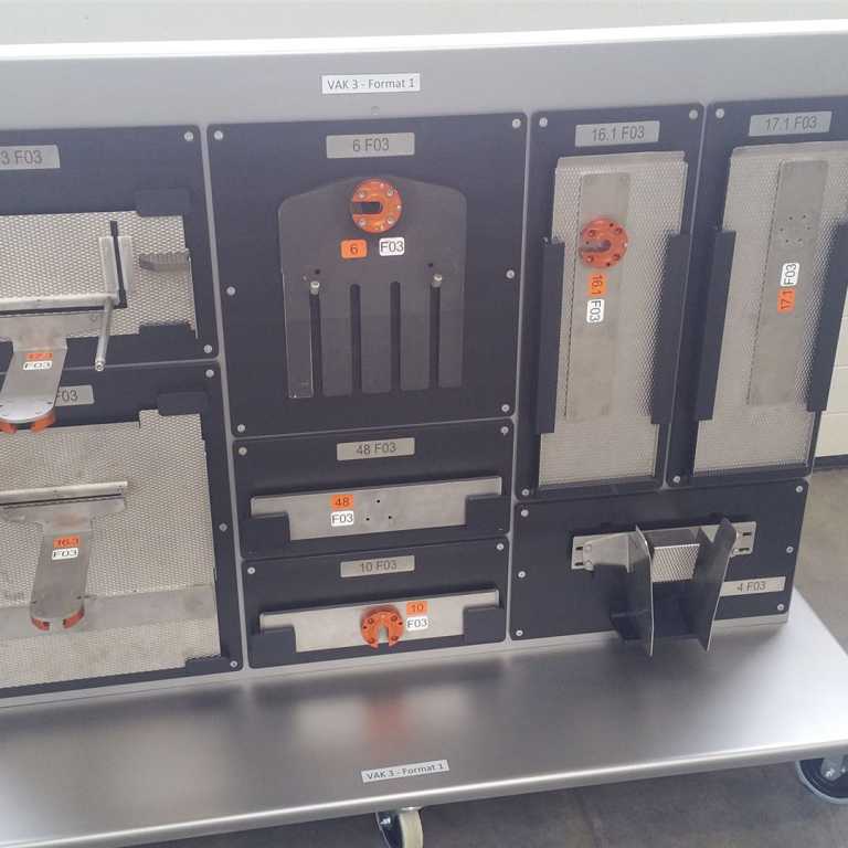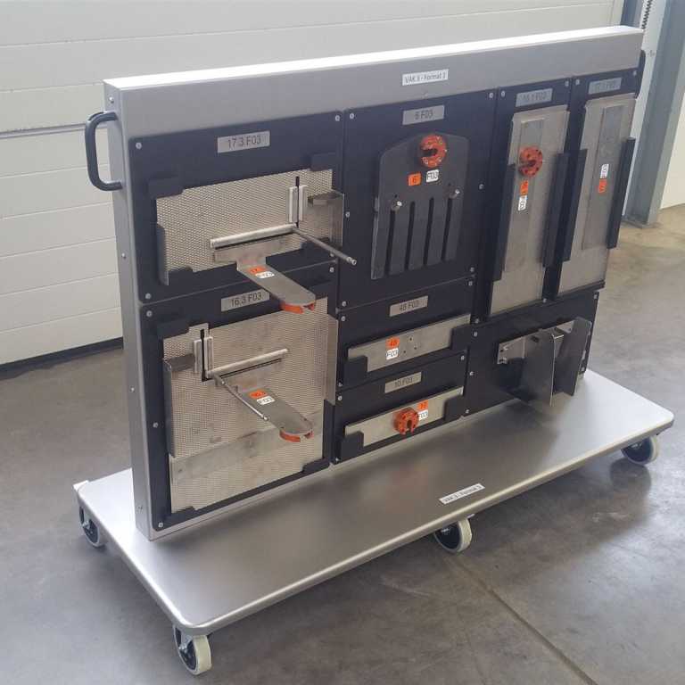 Für dieses Problem fertigen wir für Ihre Formatteile, eigene Wagen oder Wandtafeln an, dabei erhält jedes Formatteil seinen eigenen Platz hat und beschriften wir diese nach Ihren Vorgaben. Dazu messen wir Ihre Formatteile aus, modellieren diese in 3D und dann wird der Lagerplatz für jedes Formatteil separat entworfen.