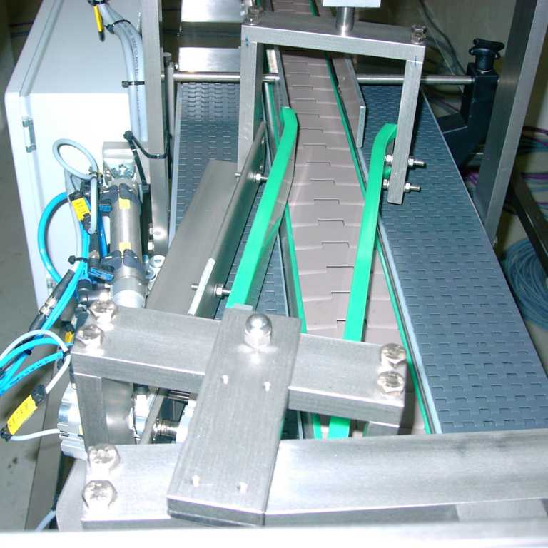 Verteilerweichen ermöglichen innerhalb einer Produktionslinie verschiedene Wege vorzugeben. Produktze können von einer Spur auf mehrere Spuren aufgeteilt oder aber zusammengeführt werden.